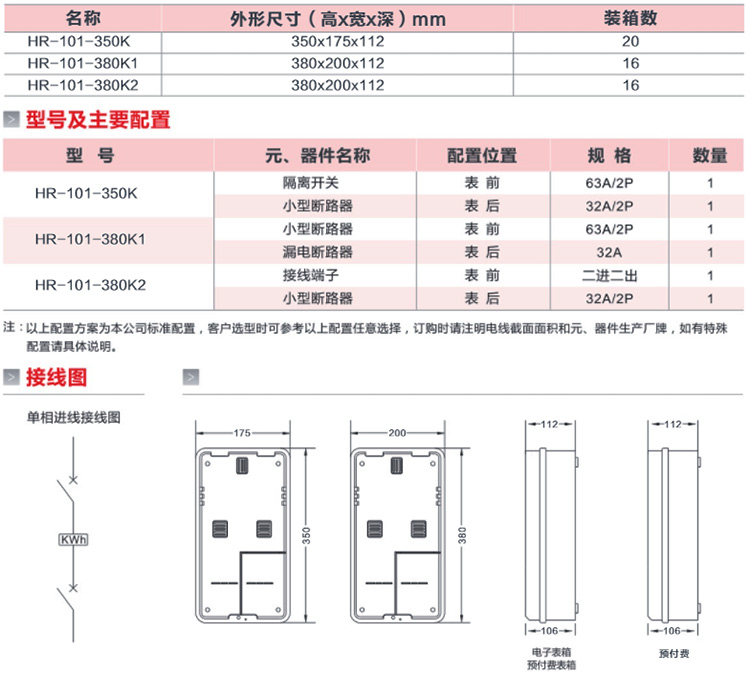 HR-101-350K 單相一表位電能計量箱