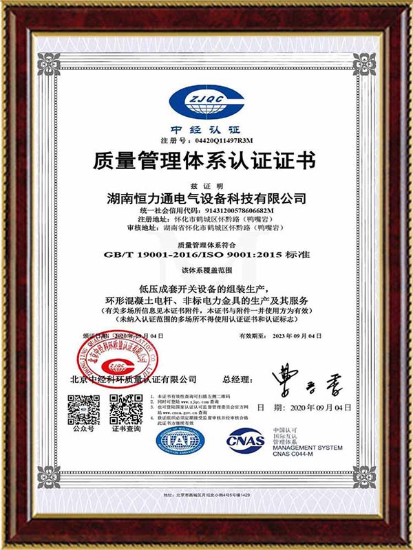 質量管理體系認證證書